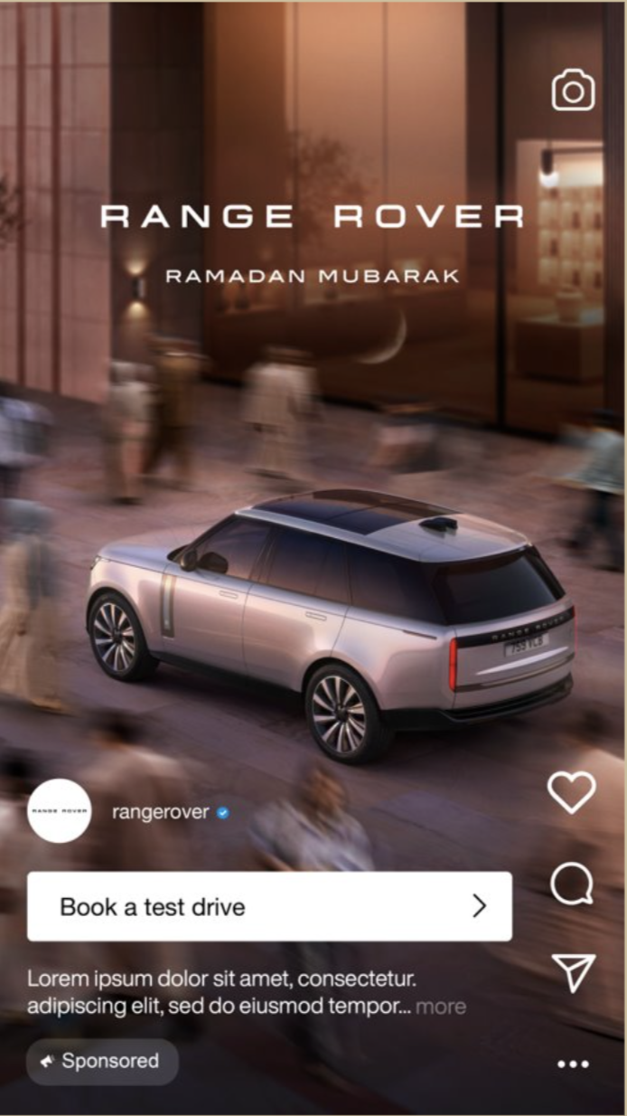 Range Rover offers a calm space for quiet reflection. Set in Modern Luxury Ramadan locations alive with activity, Range Rover is shown as a calm sanctuary amidst the flurry of movement around it.