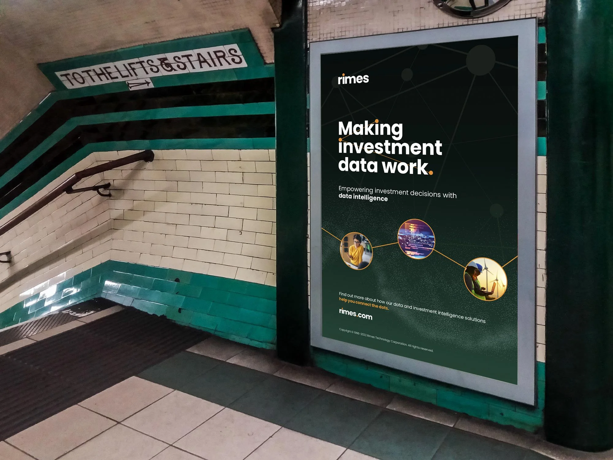 Rimes provides transformative data management and investment intelligence solutions to the world’s leading investors and asset managers. They are making the connections in investment data to build clearer pictures for their clients to fix and resolve investment data issues. We wanted to play to the core strength of Rimes expertise which is all about connecting the people to the data so we built a visual language around this idea of connection and “connecting the dots”.